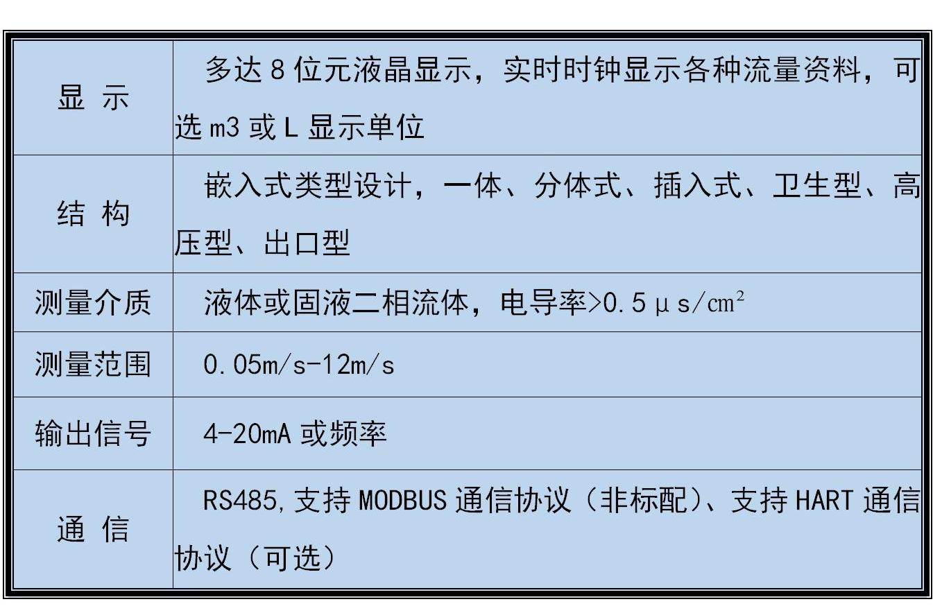 ◆測量精度不受流體密度、粘度、溫度、壓力和電導率變化的影響,傳感器感應電壓信號與平均流速呈線性關(guān)系, 因此測量精度高。